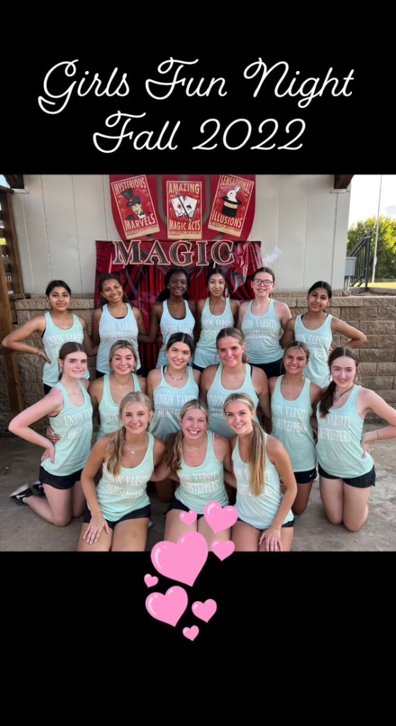 A dance show-off for family and friends will be held at 6:45 pm. Then on FRIDAY, OCTOBER 25th, girls will perform at the Union Varsity Football pre-game show!